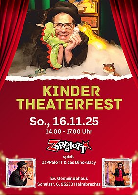 Am 16. November findet wieder das Kindertheaterfest im Evangelischen Gemeindehaus Helmbrechts statt. Zauberer ZaPPalott spielt das Stück „ZaPPalott & das Dion-Baby“.